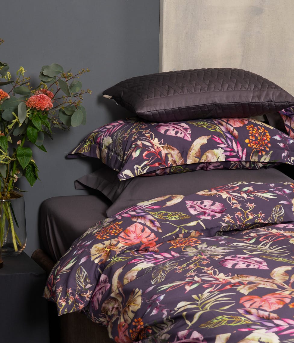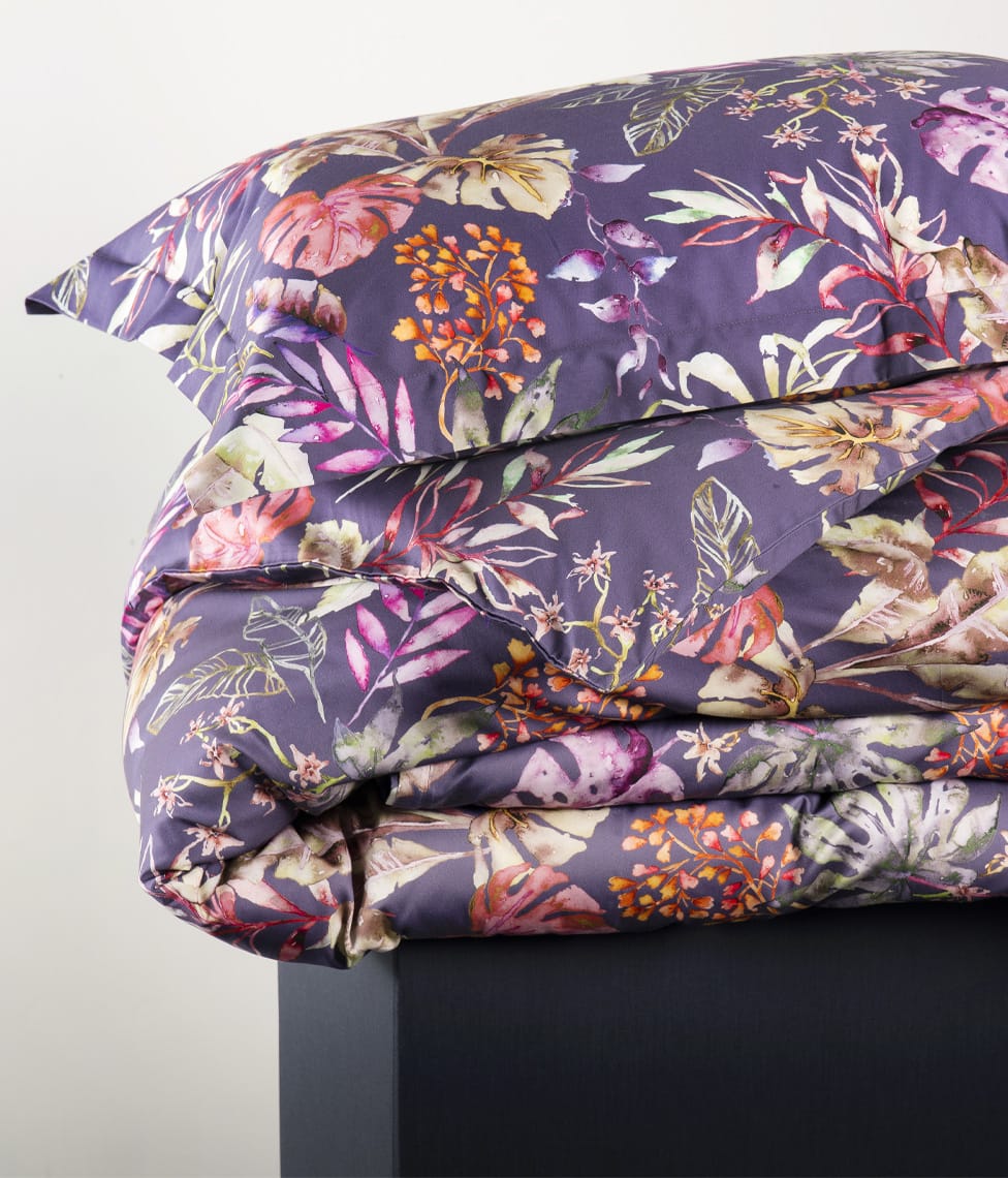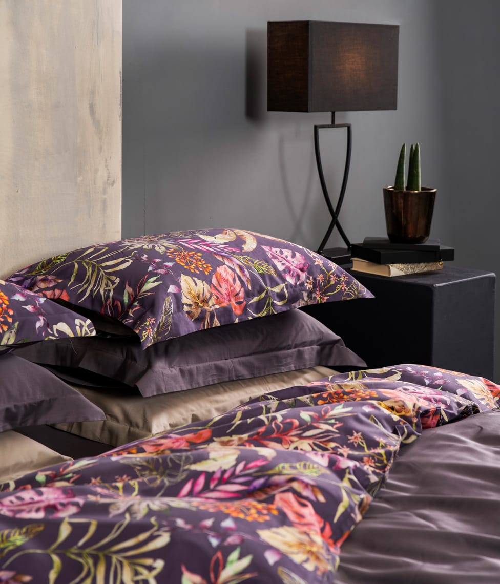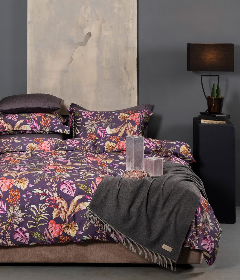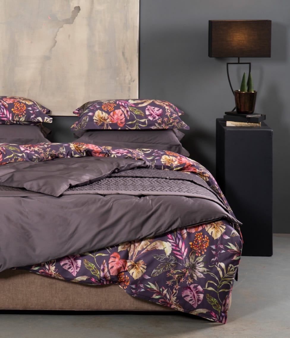 Flora Costera Figue Jam is bright, energetic and playful. The stylish Figue Jam colour and vibrant floral pattern will bring a lively modernity to your bedroom. The colored plant ornament allows you to combine the other Solid colors we have, so everyone can create a combination they like.